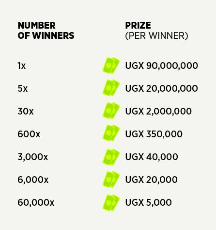 Go on a 6-week streak for 6 entries to the final draw on 28th December with a HUGE UGX 90 Million top prize.