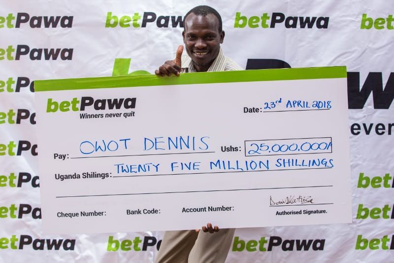 betPawa Jackpot had it’s first big winner in Uganda as Dennis Owot from Gulu, Northern Uganda predicted 16 games out of 20 correct and winning UGX 25,000,000 out of 2 shilling bet!